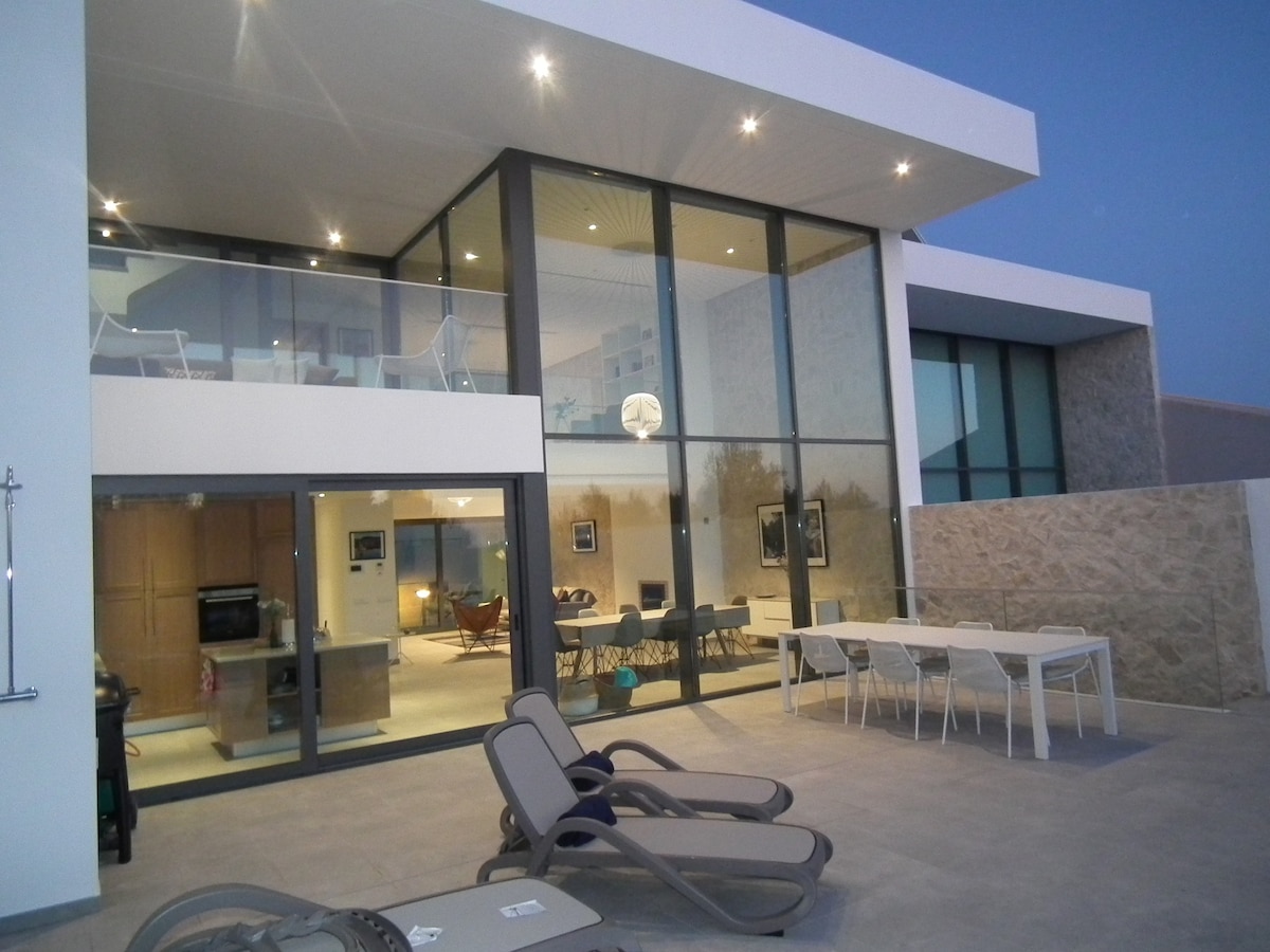 New modern architect designed house with contemporary Scandinavian style.. Borders nature park with fantatic nature trails and unspoilt beaches. 4 bedooms + 3 bathrooms. Private outdoor pool & shower – salt water & heating available on request in season June 15-Sept 15. Large outdoor entertaining/eating/relaxing area. 3 balconies. Walking distance to good local restaurants and Salema Beach 5-7 min’s. Great house for families or for smaller groups or couples.