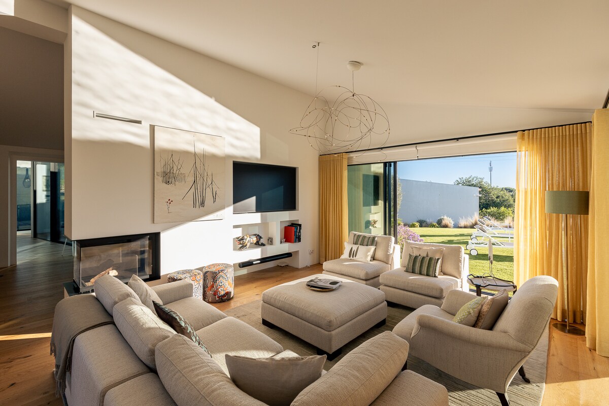 Contemporary barn-style villa, with 5 bedrooms, 5 bathrooms, BBQ, heated swimming pool (by request, extra cost) near Vale do Lobo and Quinta do Lago.