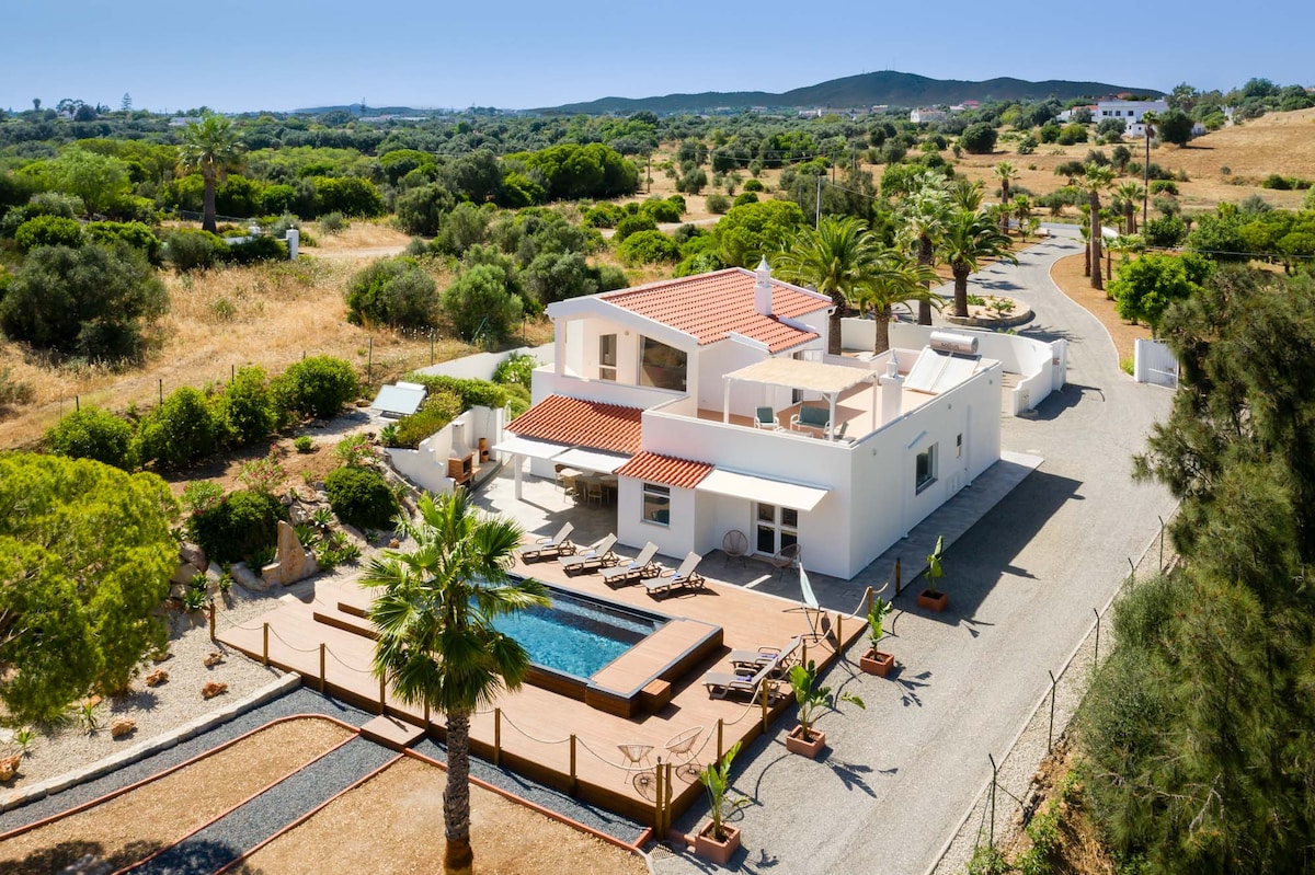 In order to spend an excellent vacation in an extraordinary place, in the middle of palm trees and in the heart of the Ria Formosa, come and relax in this wonderful newly renovated villa, with its heated pool with 2 hydromassages and its fabulous garden, just minutes from the beaches of Fuseta and the nearby islands.
