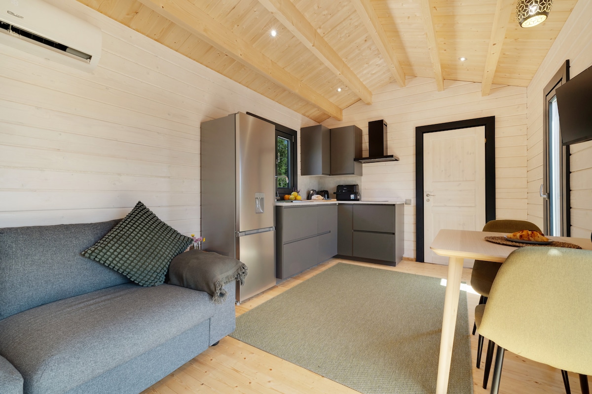 This cozy one bedroom cabin offers all the modern essentials, air conditioning, fast Starlink internet, and a cool tub for summer and wood fired hot tub in winter months.