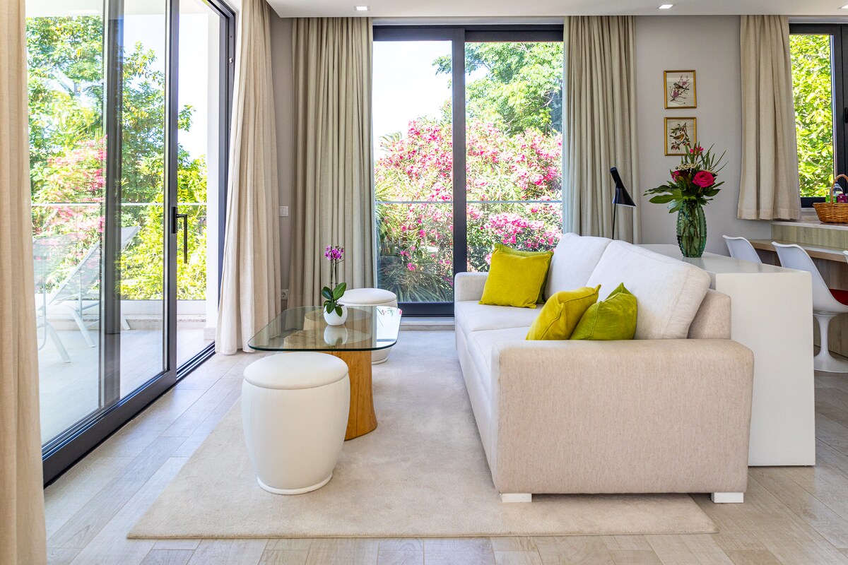 1 bedroom apartment with garden view, located in a private complex – Fazenda Viegas, in which guests can enjoy WiFi, comunal swimming pool, barbecue, tennis court, soccer field, beach volley, children’s playground and trampoline. The apartment features a flat-screen TV, a private bathroom and a fully equipped kitchen.Nespresso coffee maker and tea facilities are also available. A continental breakfast is served every morning in the apartment