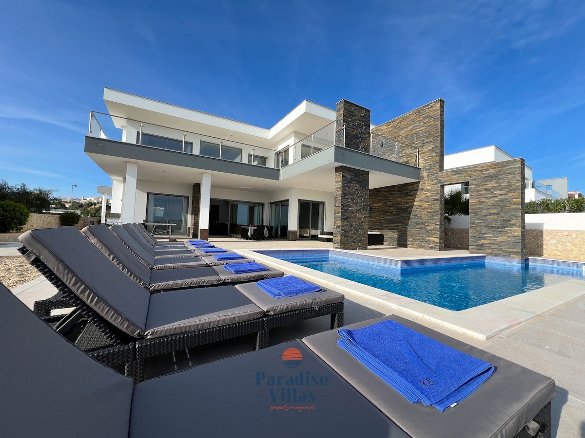 Luxurious, brand-new, modern and spacious 4-bedroom villa, with a large private swimming pool, 5 bathrooms, located in a quiet neighborhood, yet close to all amenities and only 2.5 km from the beach.