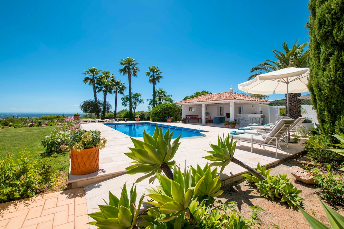 Beautiful 4 bedroom luxury Villa, large pool, patios and BBQ area set in 2 acres of land, with stunning views of the Algarve.