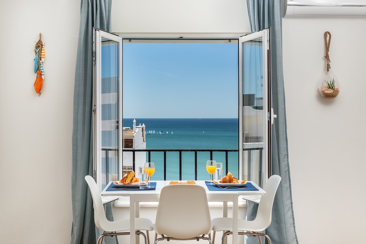 The tastefully decorated living room is “open plan” and spacious. The table set by the window makes the most of the spectacular view and having breakfast with the windows open is a must. The room has a large, comfortable sofa bed (very easy to convert) which sleeps two. The SmartTV has 100+ channels, both Portuguese and international, NETFLIX (requires an account) and Wi-Fi is fast. The air conditioning keeps the apartment comfortably cool in the summer and cozy warm in the winter. From the living room you also have access to the balcony. Baby chair is available upon request.