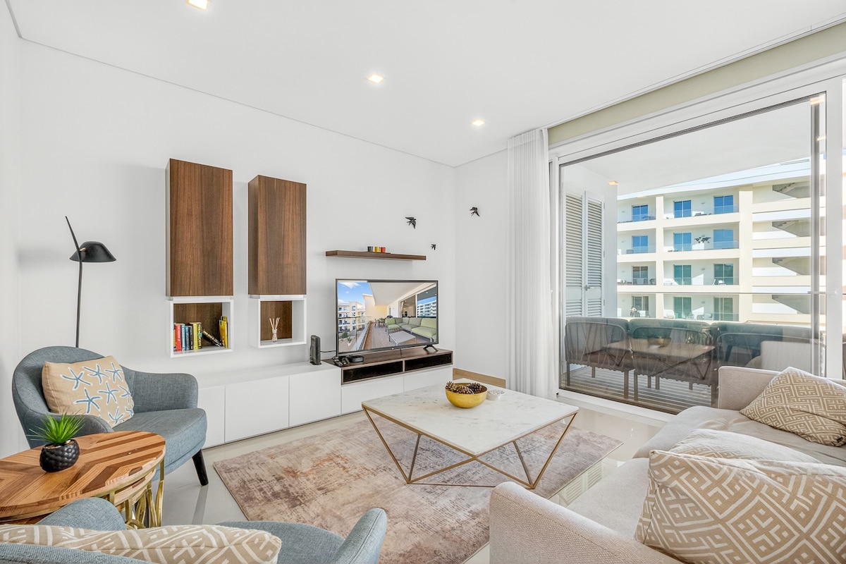 Adega Luxury Apartment is a new, top-floor T3 in the heart of Lagos Marina. Stylish, bright, and spacious, it features 3 comfortable bedrooms, a modern open-plan living area, fully equipped kitchen, air conditioning, and fast Wi-Fi. Walk to the marina restaurants, Meia Praia beach, and Lagos Old Town. Perfect for families or friends seeking comfort, privacy, and a prime location.