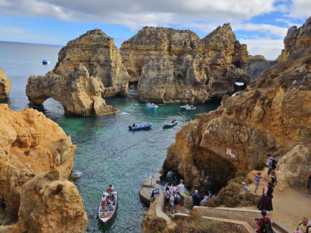 One of the best ways to enjoy Ponta da Piedade is to pair viewpoints with time at water level. From the surrounding area, you can often connect your visit with a coastal boat trip or kayak outing that threads through the caves and arches from below, offering an entirely different perspective. Even if you stay on land, the sense of scale is impressive—cliffs plunging straight into the Atlantic, waves echoing through rock chambers, and seabirds drifting on the breeze.